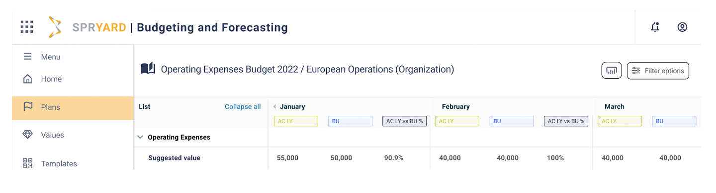 Tydliggör budgetmålen för hela organisationen. Med Spryard Planning kan du visualisera din prognos i Power BI och öka förståelsen för företagets ekonomi så att alla kan arbeta mot samma mål.